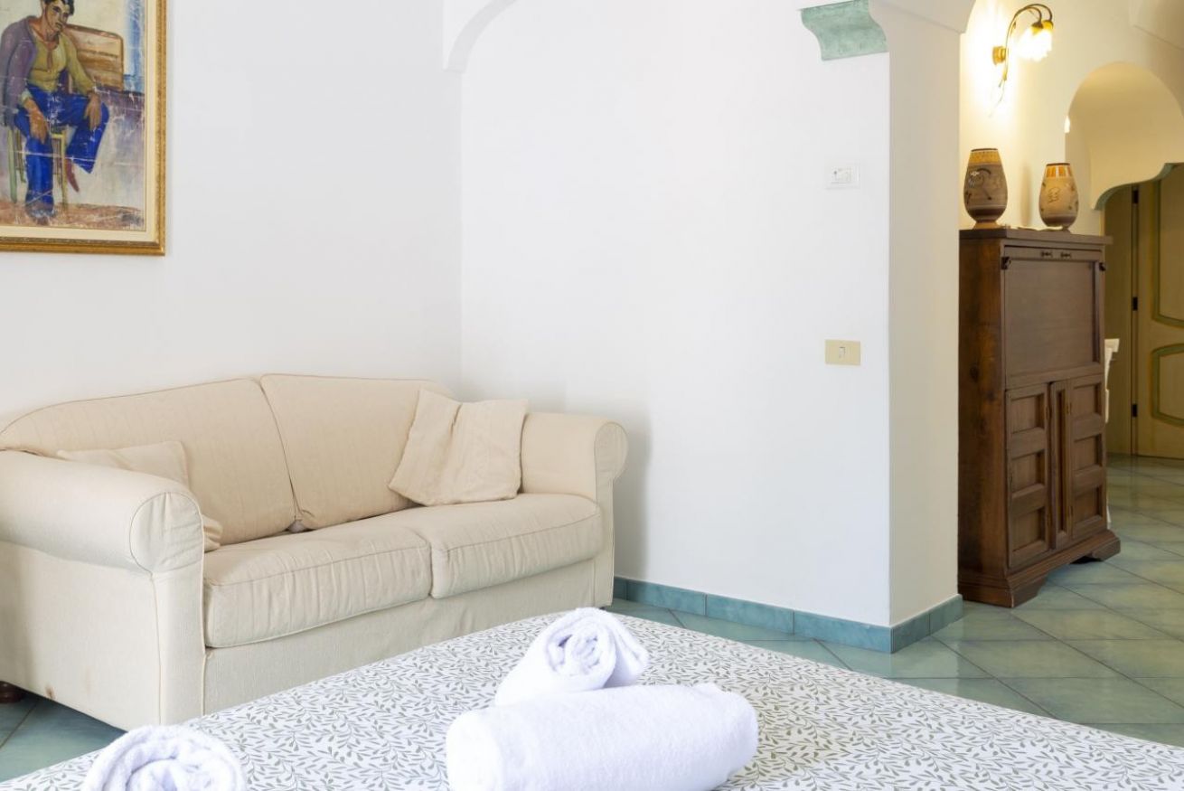 Suite con camera matrimoniale e divano letto, con ampia terrazza e vista mare.